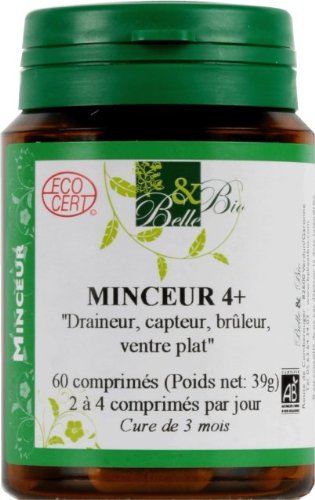 Brûleur, draineur, ventre plat et capture les graisses Avec ces 4 actions, minceur 4+ est notre produit phare de la gamme minceur. C'est un brûleur grâce au guarana, un draineur grâce au thé vert. Il aide également au déstockage des graisses, grâce au pamplemousse et affine la silhouette grâce au citrus aurantium. Enfin l'algue laminaire vous apportera les oligo-éléments indispensables pour faire votre régime. Ingrédients : Thé vert feuille BIO (200 mg), guarana* (50 mg), citrus aurentium bio orange amère extrait sec BIO (20 mg), fibres daccacia BIO (200 mg), huile essentielle de pamplemousse BIO (5 mg), algues laminaires BIO (20 mg). Conseils d'utilisation : 2 à 4 comprimés par jour, à avaler avec un verre d'eau. Certifié par ECOCERTRead more Belle et Bio Minceur 4 plus: draineur, capteur, brûleur, ventre plat 120 cp 59.8g