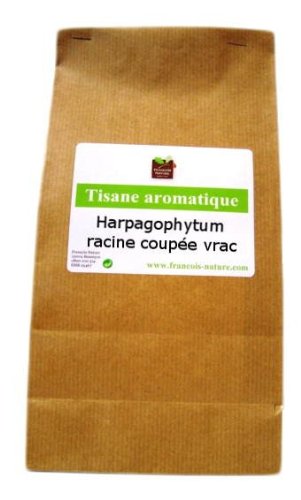 100 g. - L harpagophytum stimule les fonctions du foie et de la vésicule biliaire, agit sur les troubles de la prostate, fait baisser les taux de cholestérol et d acide urique, mais c est surtout pour ses formidables propriétés d anti-inflammatoire que l on en fait usage avec un grand succès. Infusion : verser l eau bouillante directement sur la plante et laisser infuser pendant 3 à 10 minutes, filtrer et boire (pour la fleur, feuille, sommité fleurie, pétale,...) Décoction : jeter la plante dans l eau bouillante et maintenir à ébullition pendant 10 à 30 minutes, filtrer et boire (pour la racine, écorce, graine, bois,...) Macération : laisser la plante en contact avec le solvant (l eau le plus souvent, mais aussi le vin, l alcool) pendant plusieurs heures afin que les principes actifs se dissolvent dans le liquide. Filtrer et utiliser.Read more François nature - Harpagophytum racine coupée vrac - 100 g.