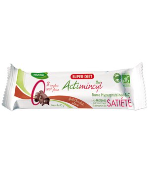 Les Barres Hyperprotéinées Actimincyl Bio s'utilisent dans le cadre d'un programme minceur, ou tout simplement dans le cadre d'un programme d'entretien de votre silhouette.  Les Barres Hyperprotéinées Actimincyl Bio vous apportent plus de 10 g de protéines par portion. Les protéines sont les parfaites alliées de votre silhouette car :  - Elles favorisent la sensation de sasiété.  - Elles aident au maintien de la masse musculaire.  Marque : Super Diet   INGREDIENTS Protéine de lait*, chocolat lait* (18%), (sucre*, beurre de cacao*, lait entier en poudre, pâte de cacao*, vanille en poudre, émulsifiant: lécithine* de soja), sirop d'agave*, inuline*, jus concentré de fruits*, blanc d'oeuf en poudre*, huile de coiza*, fibres solubles d'acacia*, farine de lupin*, arôme naturel, son d'avoine*, cacao en poudre, acide aminé : thréonine, anti-oxydant : extrait de tocophérol. * Ingrédient issu de l'agriculture biologique  CONSEILS D'UTILISATION Prendre 1 barre...Read more SuperDiet Actimincyl 1 barre hyperprotéinées de 40g goût Chocolat caramel