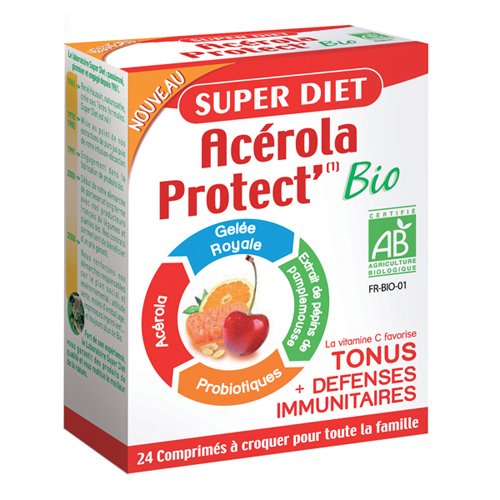 Main Features : SuperDiet Acérola Protect Bio Gelée royale Pépins de pamplemousse 24 comp. dès 7 ans