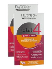 Le complément alimentaire Total 4 Jour et Nuit Physcience est un programme minceur express de 14 jours basé sur 2 actions :Action Jour (gélule jour) pour :- Brûler les calories (caféine),- Drainer l'eau en excès (Thé vert),- Retrouver un confort intestinal (complexe de probiotiques)Action Nuit (comprimé Nuit) pour :- Limiter le stockage des graisses (Neopuntia breveté)- Traquer les sucres (cannelle).