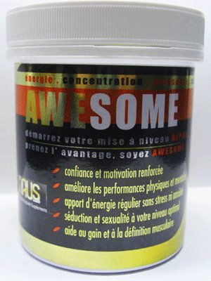 Energisant, aphrodisiaque, brain booster et brûleur de graisse. Ajoutez l' Awesome dans vos bonnes habitudes. Composition moyenne pour 6 gélules : ginseng (300 mg), tribulus terrestris (1200 mg), guarana (150 mg), noix de kola (150 mg), muira puama (600 mg), gingko biloba (300 mg), gingembre (900 mg).