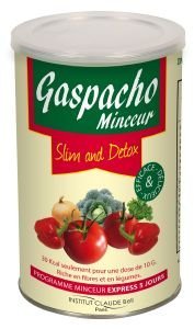 GAZPACHO PRODUIT MINCEUR CLAUDE BELL Seulement 30 Kcal par portion Gazpacho produit minceur Claude Bell en boite 250g Gazpacho produit minceur Claude Bell en cure minceur de 5 jours Gazpacho produit minceur Claude Bell 25 g dans 125 ml d'eau froide. C'est prêt ! 2 fois par jour Gazpacho produit minceur Claude Bell contient •Des protéines •Des légumes riches en fibre •Des actifs de plantes qui activent l'élimination des graisses
